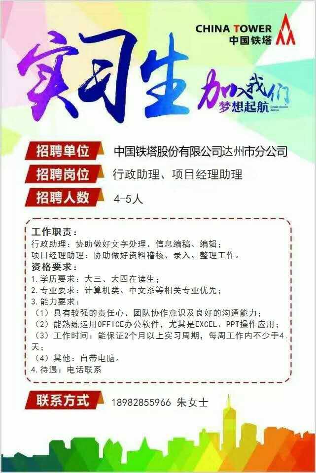 中国铁塔股份有限公司达州市分公司招聘信息