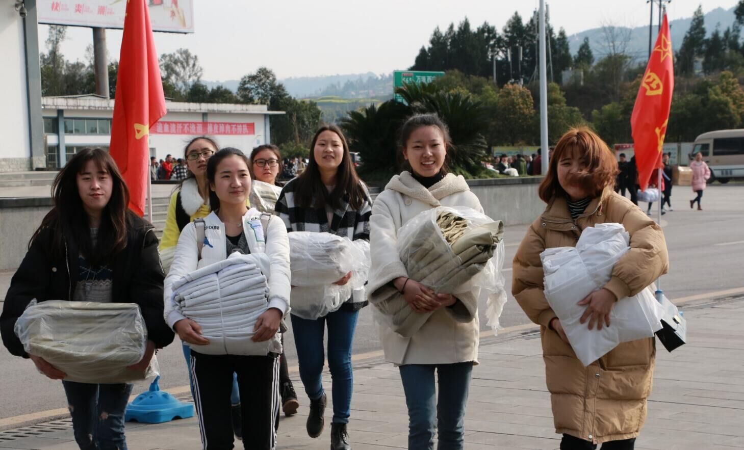 早上6:30,所有军训学员在莲湖校区音乐广场进行开训仪式,随后抵达训练基地。面对新奇的军训旅途,他们期待、激动、紧张。从进入基地的惊呼,到有条不紊的听从指令行动,大家都表现出满满的热情。整理内务,口令练习,熟悉军姿……一项项任务被分配下来,辛苦、疲劳,却又充满动力。在整理内务中,最重要最困难的无疑是叠被子,对于从小被父母捧在手心里的大家来说,这是一项困难的任务,教官手中的“豆腐块”,在自己手里却是不成型的不规则体。旁边的同学叠的越来越好,每一个“新兵”都涌出一股不服输的气势,在一次又一次的练习中,手中的“豆腐块”越来越齐整。成就感,满足感油然而生,所有的努力都在这一刻都化成了喜悦。令行禁止的晚饭安静又匆忙,最后在肃穆且热血的军区宣传片中结束了这与众不同的一天。