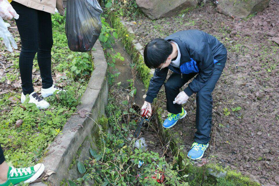 在出发前,杨婷为大家分发了垃圾袋和手套,以便在攀登的山程中捡垃圾,保护山间环境。节假日期间客流量大、垃圾多、作量大。有的钻进树丛中捡白色垃圾,有的在水沟里夹起果皮、捡起在楼梯两侧空隙处的塑料包装放入手中的垃圾袋中。最后大家在凤凰塔下拍照留念,在快门按下的瞬间,宣示着此次活动的圆满结束。