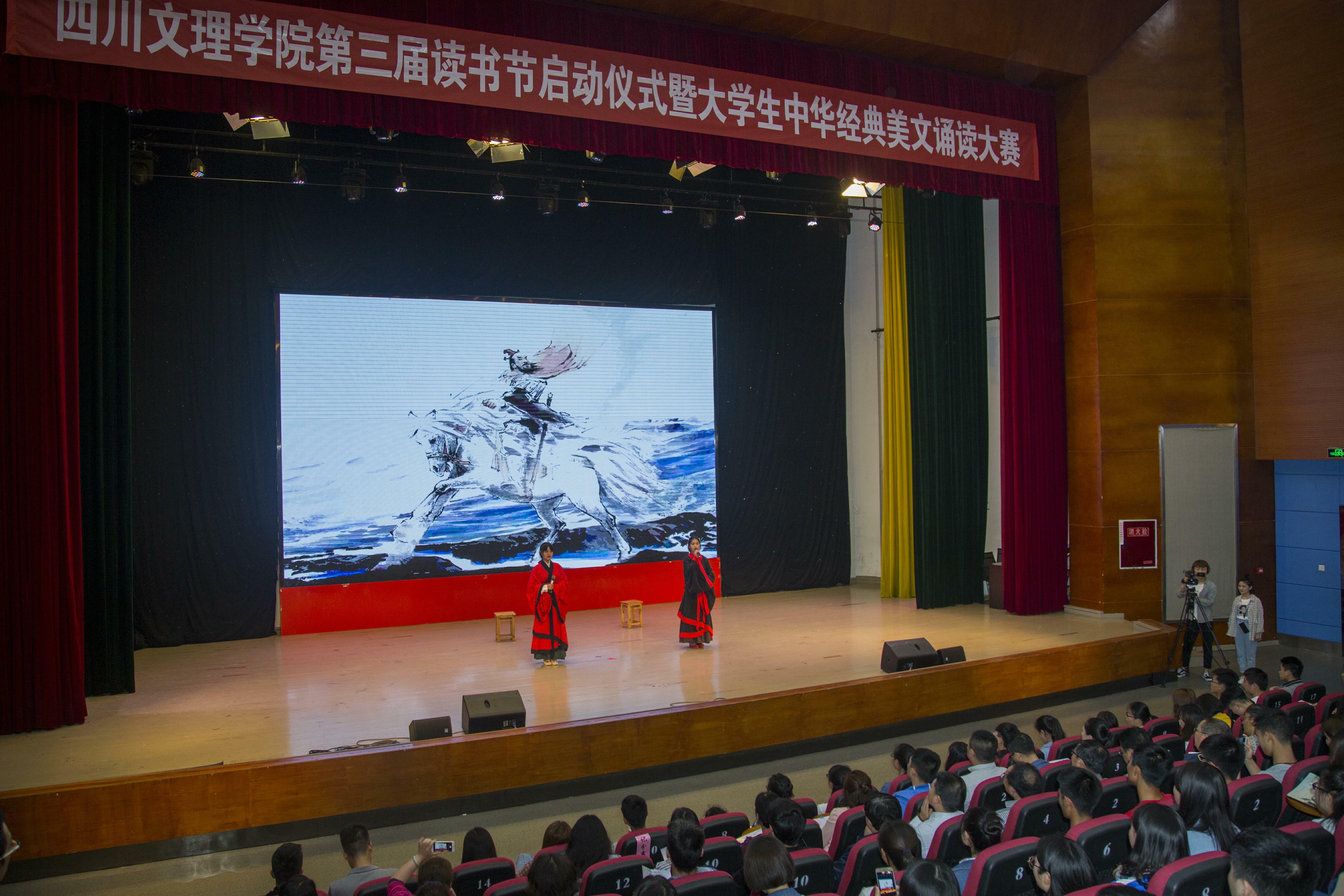 2018年4月11日19:30,第三届读书节启动仪式暨大学生中华经典美文朗诵大赛在文传演播厅举行。十大信誉官网党总支副书记彭时敏及两位学院参赛者共同参加启动仪式,副校长李壮成教授主持开幕式。