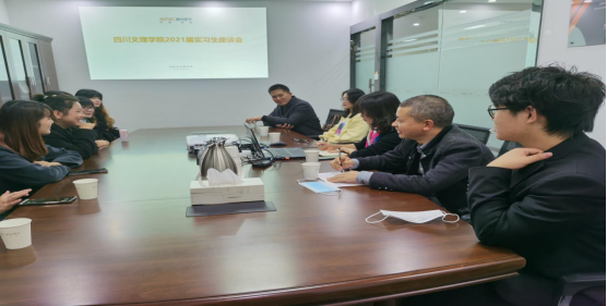座谈会结束后,融创四川分公司周波总经理首先对学生前期的表现作了充分肯定,对同学们遇到的困难和问题积极关切,周波总经理希望在接下来能够与学校共探讨、探索校企合作新模式,共同培养适应行业、企业需要的专业人才。陈熙隆带队与融创四川分公司进行了沟通协调,针对目前同学们反馈的一些问题与实习单位作了充分的沟通,并就初始阶段的实习情况、学生表现以及专业与行业需求、人才培养等方面与企业进行了深度交流。