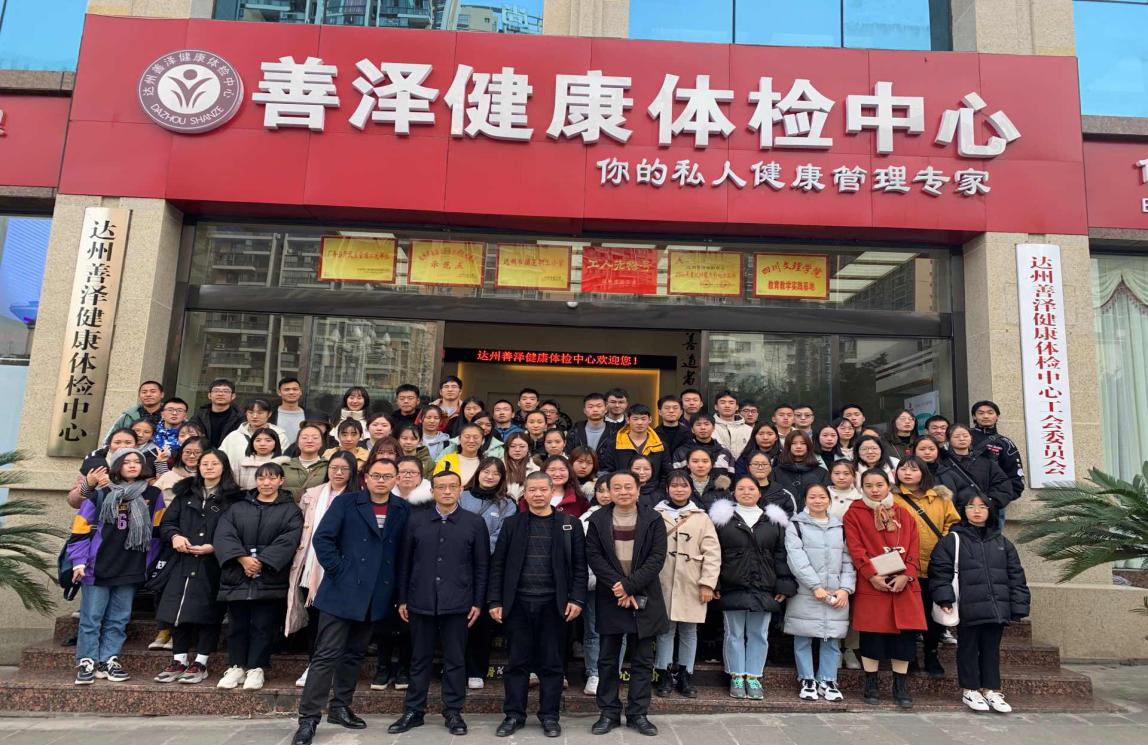 2019年12月26日上午,学院健康服务与管理专业2019级3.4班70名学生到达州市善泽健康管理中心进行了专业认知见习。学院副院长陈熙隆教授、健康服务与管理教研室主任张俊浦副教授、专业老师崔俊营老和叶盈全程参与。 在健康管理中心专业人员指引下,同学们参观了各功能室,体验了相应的设备设施,聆听了专业医护人员的详细讲解。 参观结束后,举行了座谈会。善泽体检中心赵健院长出席并为同学们介绍了善泽体检中心、解读了康养与康复,并就同学们关注的焦点问题,做了积极的回应。陈熙隆对善泽健康管理中心为学生提供的见习机会表达了由衷的感谢,对参加本次专业认知见习的同学提出了要求,并祝愿校企合作越办越好。座谈会由张俊浦主持。