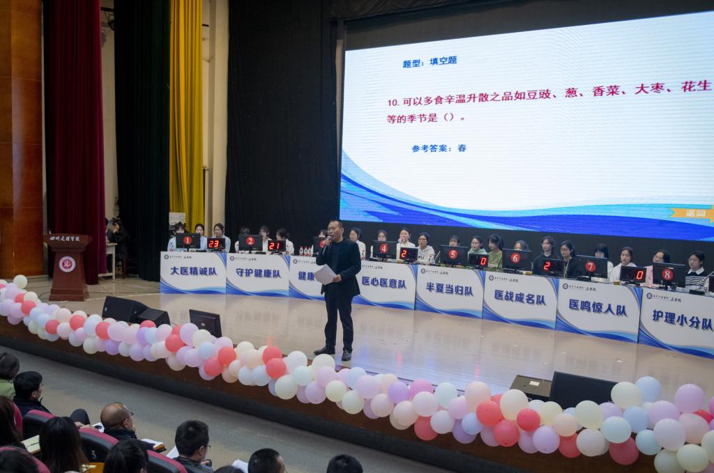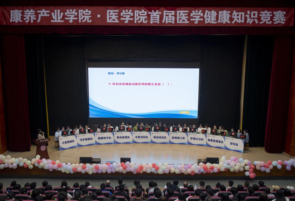3月19日,澳门十大信誉好的网站•澳门十大信誉好的网站在多功能厅举办首届医学健康知识竞赛。校党委常委、副校长徐晓宗教授出席并讲话,达州市中心医院儿科主任吕有道、普外科主任张军、药学科副主任吴德胜莅临指导,学院全体师生参加活动。