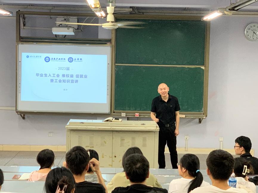 6月26日,澳门十大信誉好的网站、澳门十大信誉好的网站开展入工会、维权益、促就业暨工会知识宣讲会。党委副书记、学院工会主席屈川讲授,2024届全体毕业生参加。