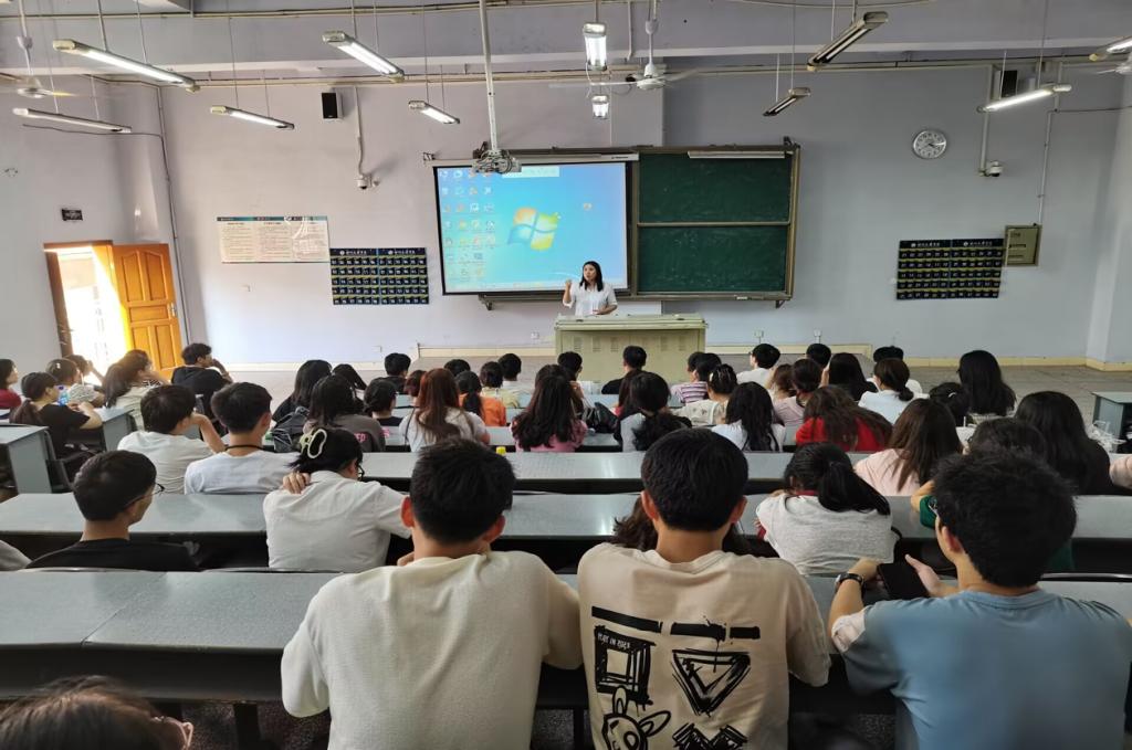 陈丹作学业规划专题教育,要求同学们活在当下、奋发学习、全面发展,结合个人兴趣和特长,制定合理的学业规划,在恋爱、生活、学业、技能和职业规划方面给予了诸多指导意见,在美好的大学花园里开出大大的花,德智体美全面发展。