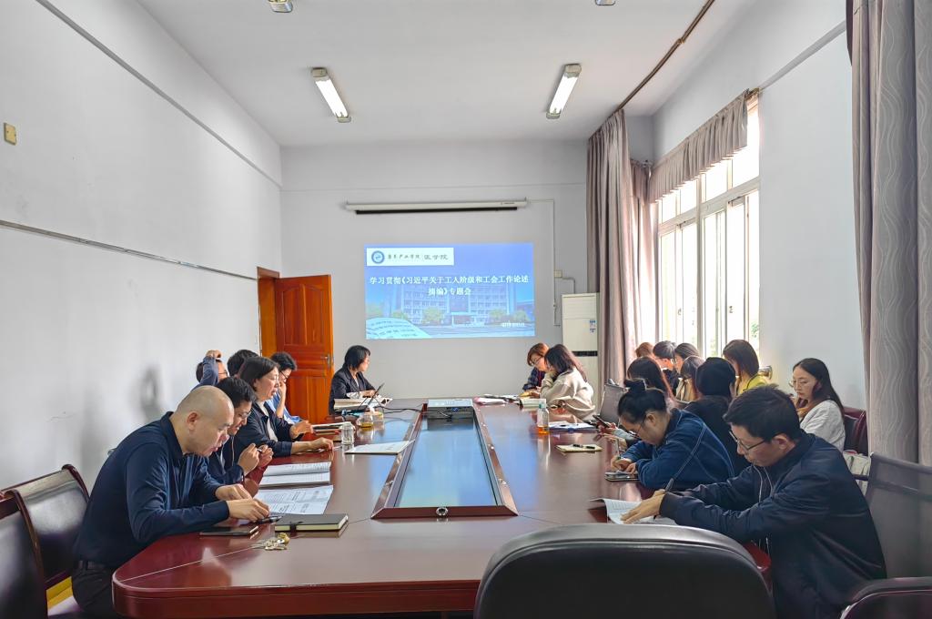 10月11日下午,澳门十大信誉好的网站、澳门十大信誉好的网站召开学习贯彻《习近平关于工人阶级和工会工作论述摘编》专题会议。会议由学院党委副书记屈川主持,学院党委书记彭时敏出席,全体教职工参加会议。