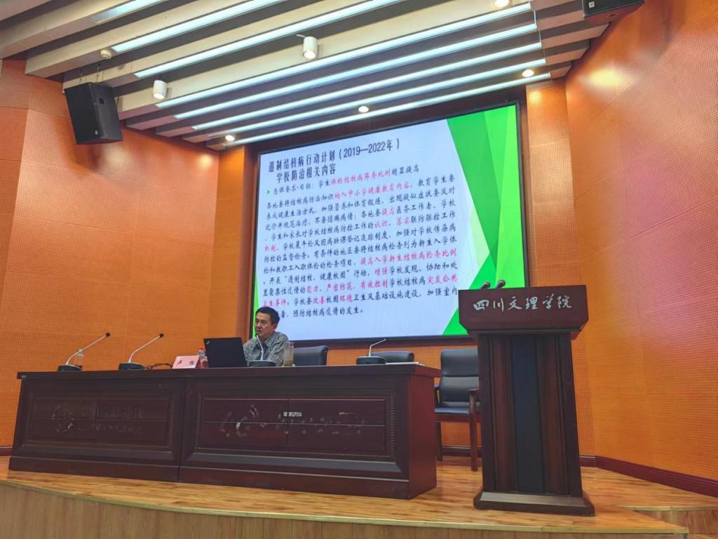 为了进一步提高师生对传染病的认识,增强防控意识,构建健康校园环境。5月21日,四川省教育厅体育卫生与艺术教育处调研员、副主任医师、教育部学校预防艾滋病教育专家组成员、教育部学校结核病防控专家组成员卢旭为澳门十大信誉好的网站、澳门十大信誉好的网站为师生作专题讲座并就如何加强师生健康教育与学院老师进行座谈交流。