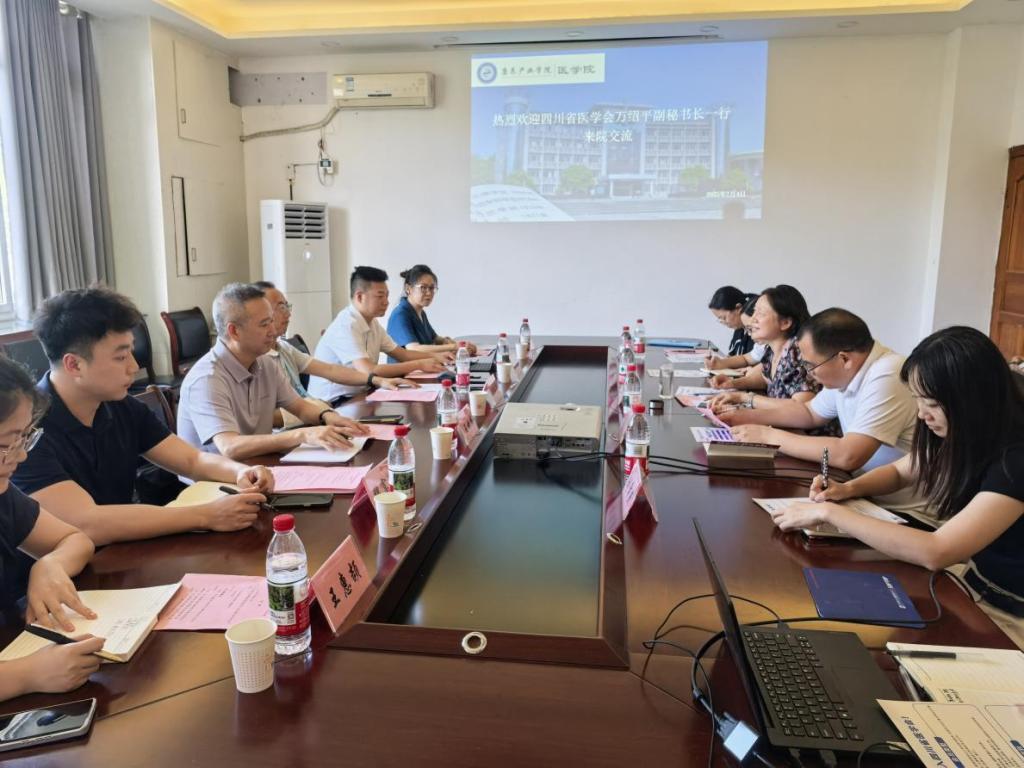 为进一步深化校会合作,推动医学教育与科研创新发展,7月4日,四川省医学会副秘书长万绍平一行莅临十大信誉官网交流指导。学院党委书记彭时敏主持会议,学院领导班子及教师代表参加座谈,双方就学院发展现状、科研合作需求等进行了深入探讨。