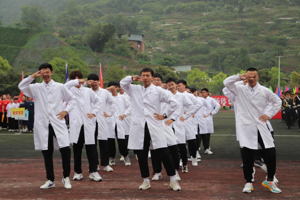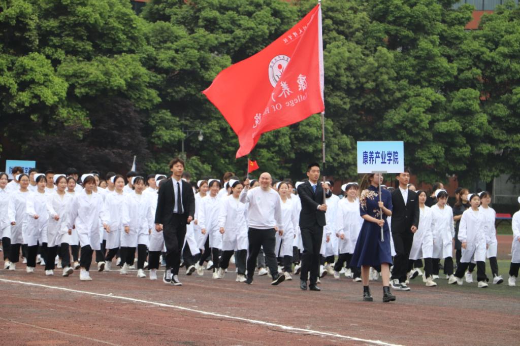 运动会自4月21日上午8点开始,前后共持续两天时间。运动会开幕式上,十大信誉官网同学精神抖擞、斗志昂扬,在学院党总支副书记屈川老师的带领下,迈着整齐的步伐,喊着“医学康养,青春激扬,奋勇拼搏,开创辉煌”的口号,与众不同的白大褂服饰在朝阳下熠熠生辉,成为了开幕式里一道靓丽的风景线,一曲活力自信的《健康操》极具学院特色。