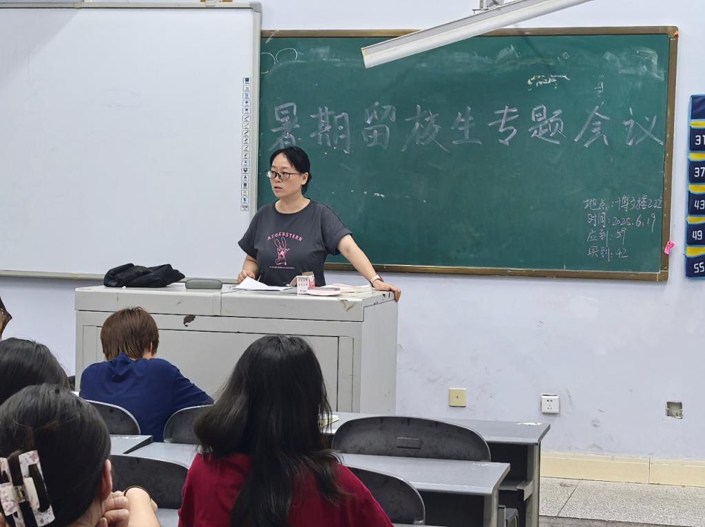 会上,周宏星围绕假期安全管理工作提出具体要求,一要加强宿舍安全管理,严禁使用违规电器,杜绝火灾隐患;二要注意出行安全,外出时结伴而行,避免前往危险区域;三要提高防诈骗意识,警惕网络诈骗和非法借贷;四要严防溺水事故,严禁到无安全防护的自然水域游泳,如需游泳必须选择正规游泳场所,并确保有救生员在场;五要保持健康作息,合理安排学习与生活,遇到突发情况及时联系值班师生。她强调,暑假期间留校学生要严格遵守学校规章制度,注意人身财产安全,提高防范意识。学院将全力做好留校学生的服务保障工作,确保同学们度过一个安全、充实的假期。