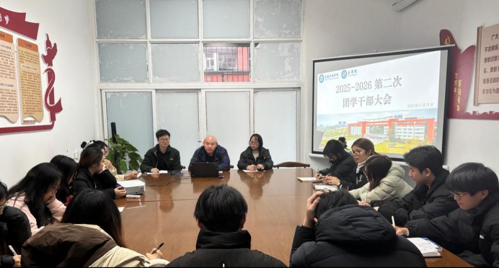 学院团学负责老师对上一阶段的团学工作进行了总结回顾,并就下一阶段的思想引领、组织建设、校园文化活动、社会实践与志愿服务等重点工作进行了部署和说明。与会学生干部代表认真聆听,并就如何更好地开展工作、服务同学进行了交流探讨。