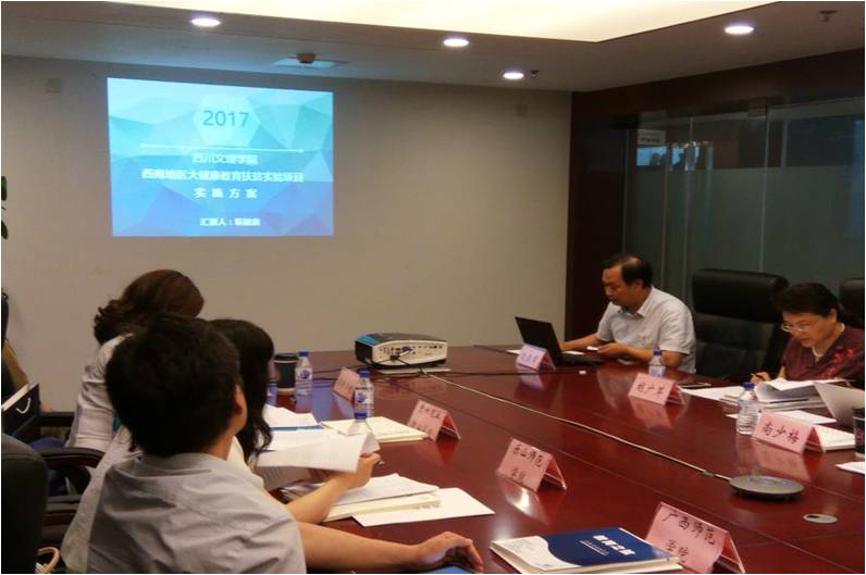 在项目交流会上,靳能泉教授从学校简介、项目背景、项目目标、实施方案、时间进度、人员分工、经费预算等七个方面对我校入围的“西南地区大健康教育扶贫实验项目”进行了陈述,阐述了学校学院依托老年服务与管理专业开展健康教育活动和健康扶贫工作的做法和愿景,并呼吁相关专家领导关注和指导位居革命老区的四川文理学院发展。与会专家肯定了学院取得的相关成果及办学思路,提出学院要以此项目为依托,大力发展康养产业相关专业,积极凝练老年服务与管理在专业建设、人才培养、协同育人等方面的经验和特色,大胆探索养老服务与房地产经营管理深度融合的新思路、新模式。